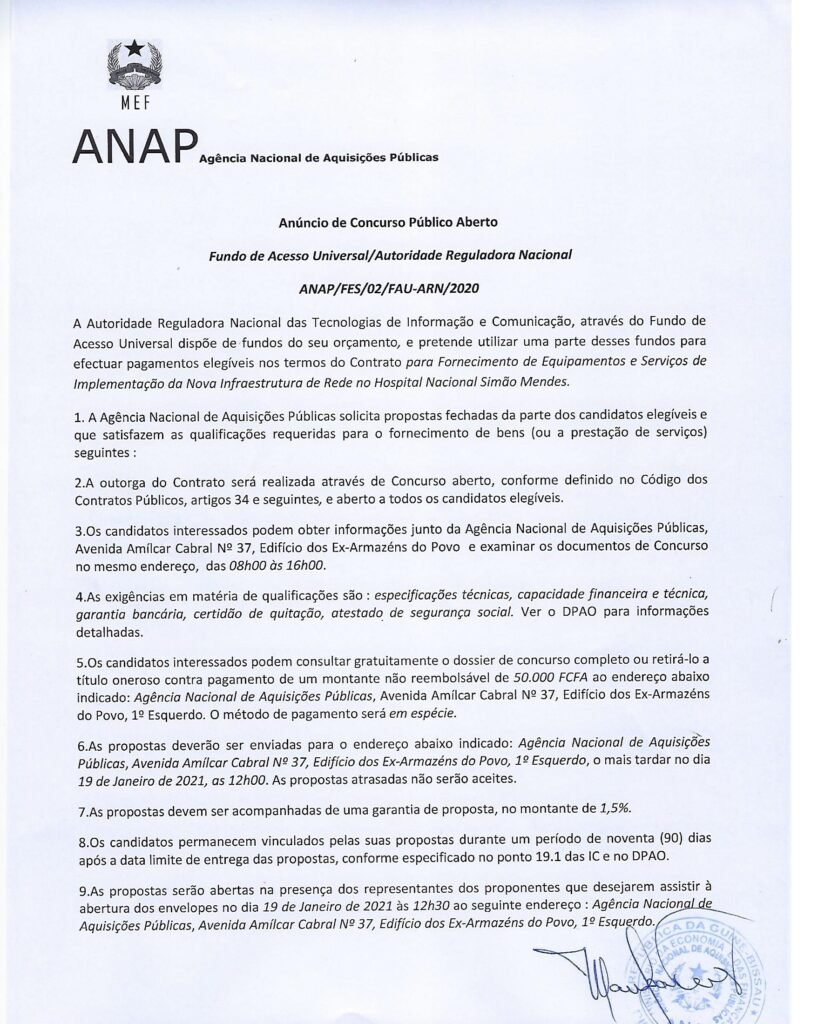 Anúncio de Concurso Público Aberto