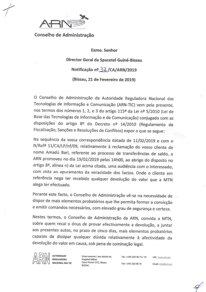 Notificação Nº 32/CA/ARN/2019 Segunda-feira, 4 Março, 2019 | Notícias | 0 comments Abra o artigo em ficheiro pdf no link abaixo: Notificação Nº 32/CA/ARN/2019